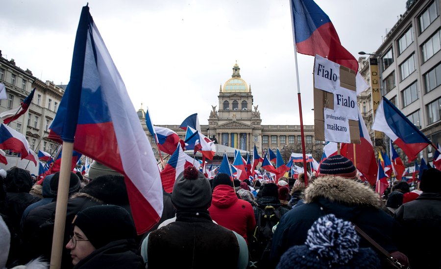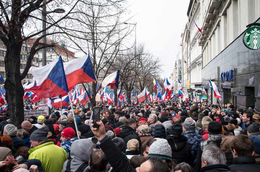 „Všude byla spousta českých vlajek. Hodně lidí v různých stadiích naštvanosti, když to řeknu slušně,“ popisuje účastníky na demonstraci Radek Mokrý.