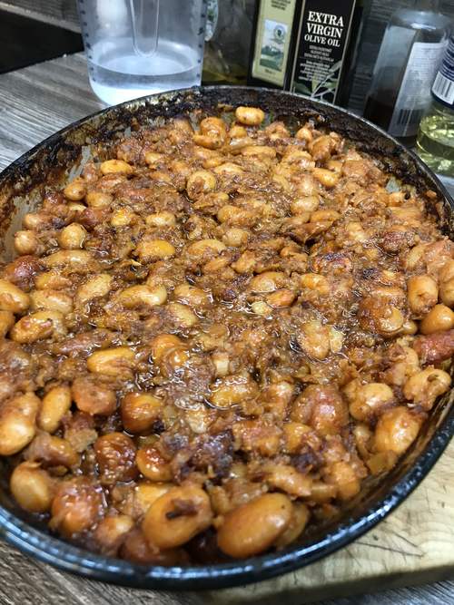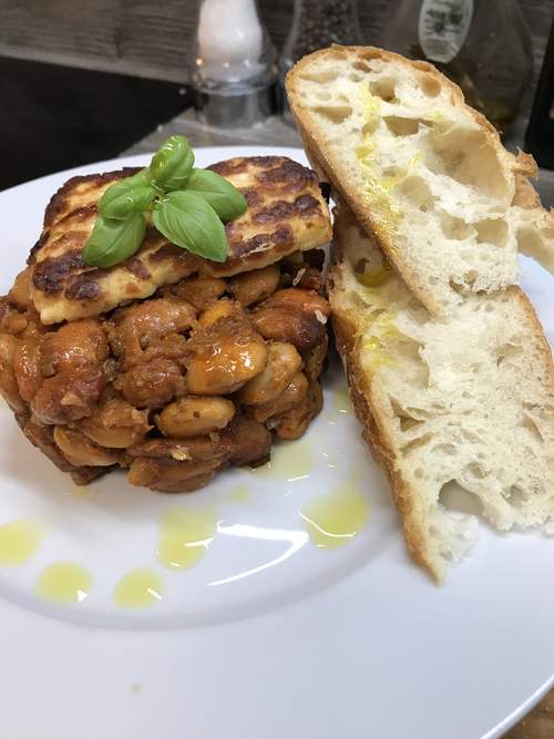 V jednom obchodním řetězci jsem před nedávnem koupil v akci kyperský sýr halloumi, který je vyrobený z kozího a kravského mléka. No, a když mám tenhle sýr, musím k němu udělat i pečené fazole. Pečené fazole dělám i bez sýra, prostě jen tak s bílým chlebem, jak se na polovičního Srba sluší a patří.
