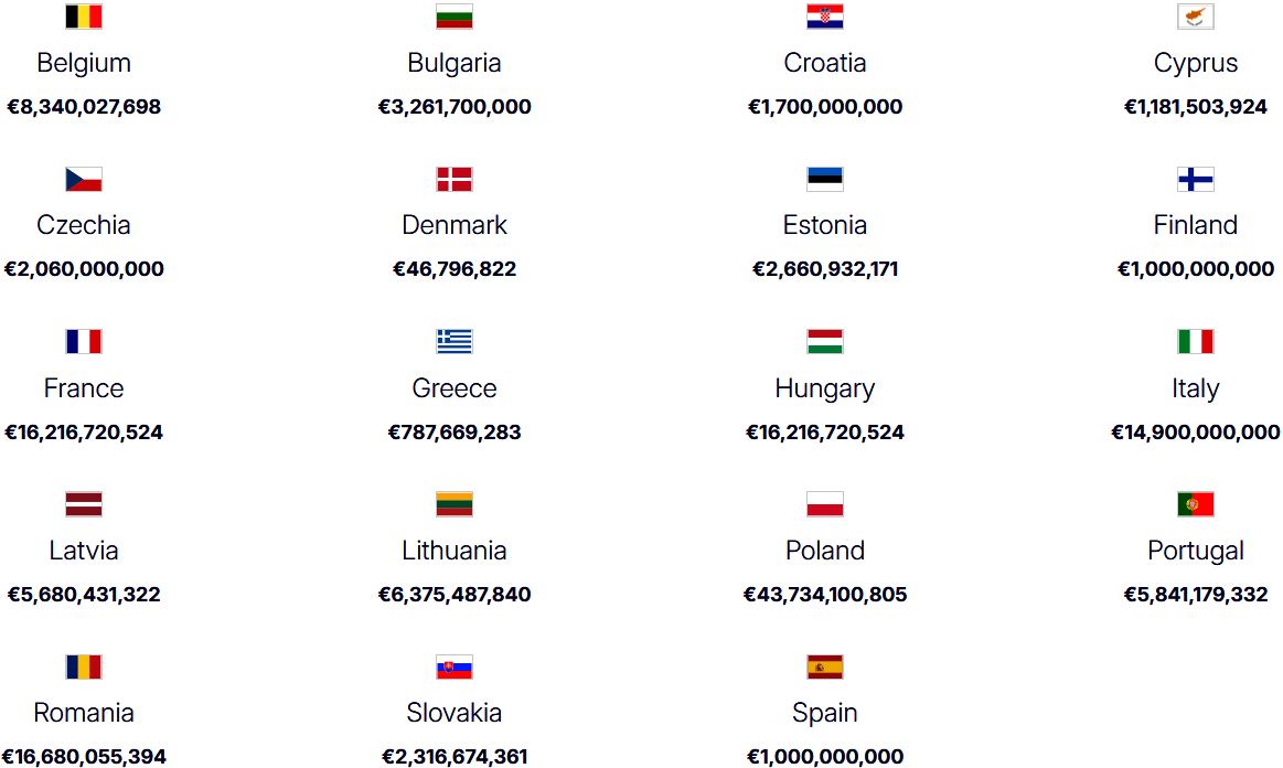 Předběžné rozdělení prostředků z fondu EU v programu SAFE na členský stát