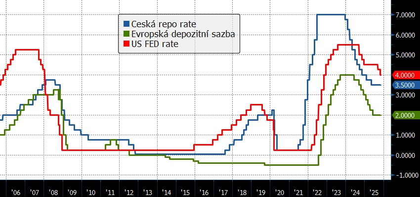 Vývoj základních sazeb v USA, Eurozóně a České republice