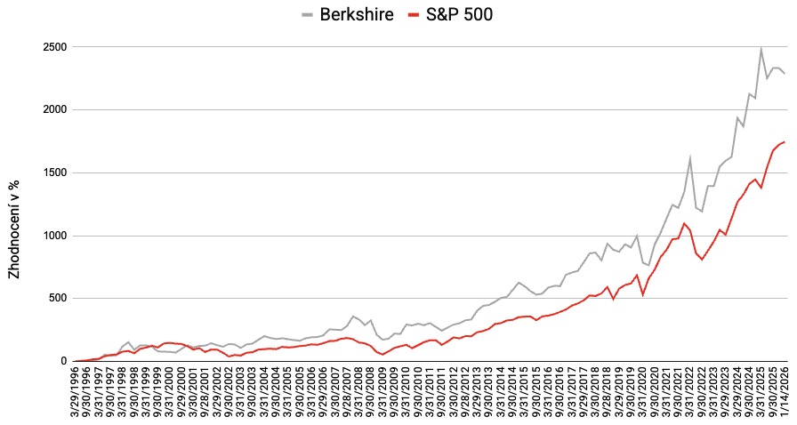 Porovnání výkonnosti akcií Berkshire Hathaway a indexu S&P 500