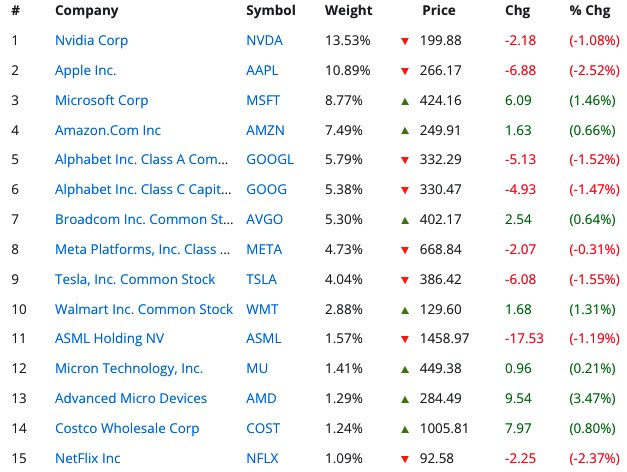 15 výsadních firem v indexu Nasdaq 100