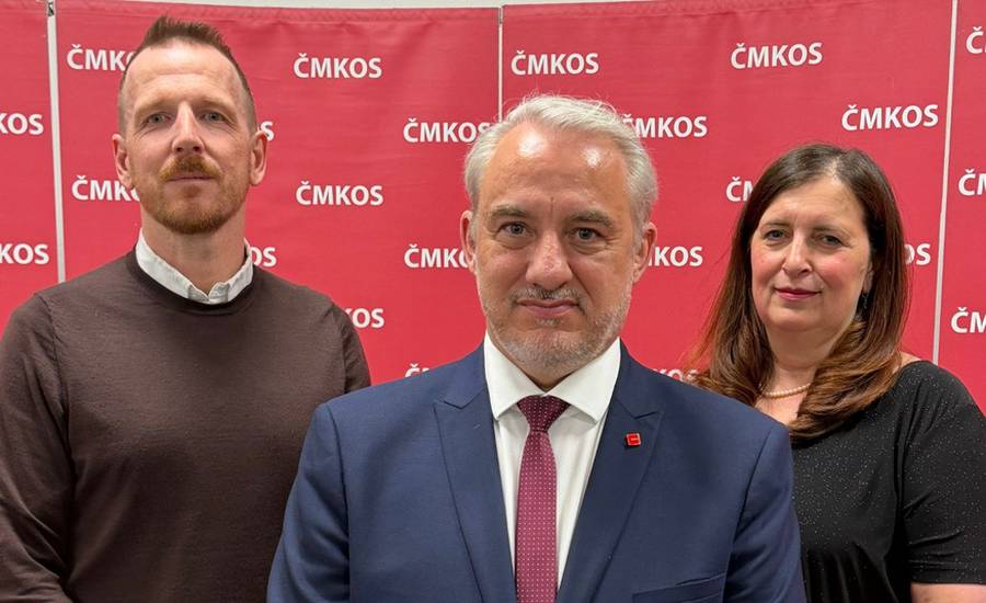 ČMKOS si na svém IX. sjezdu zvolila vedení na další čtyři roky. Pozici předsedy obhájil Josef Středula [uprostřed], místopředsedkyní je Radka Sokolová a novým místopředsedou Lukáš Němec. / Foto: ČMKOS